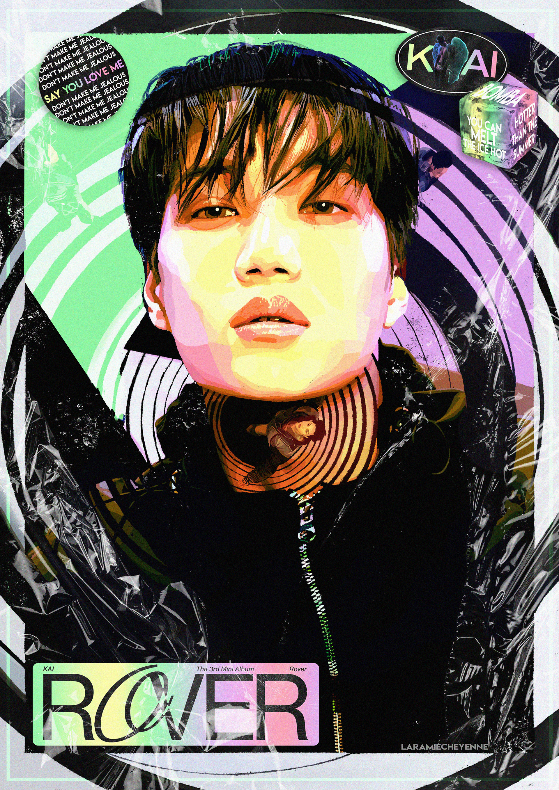 I broke out ye old apple pencil and finally drew for the first time in months. Mixing art and design is what got me into the graphic design world in the first place, so getting back to my roots every once in a while is refreshing. I'm late posting this here, but I kept up my tradition of drawing/designing a poster for Kai's solo albums! Keeping up the matching aesthetic three years in a row is always a challenge, especially when the album concepts are all different, but I'm happy with how it turned out!